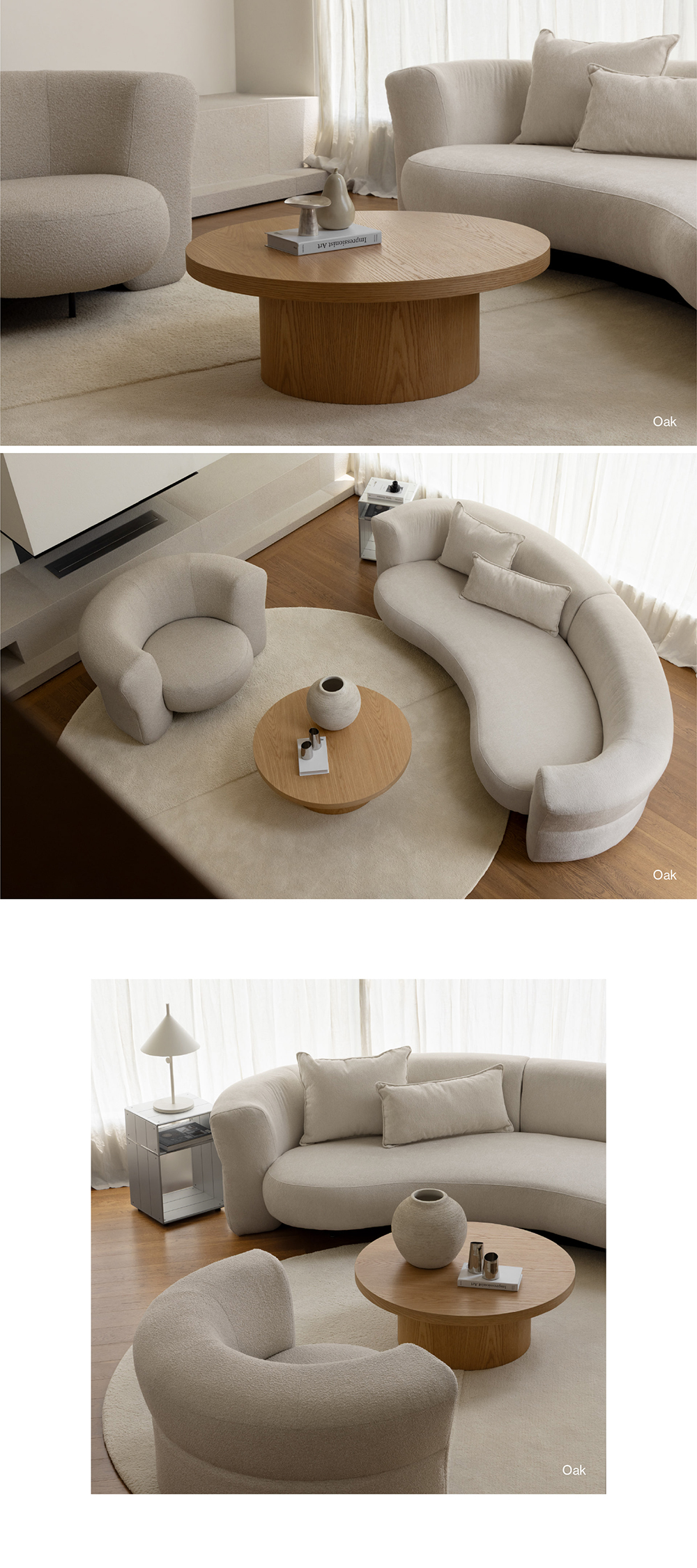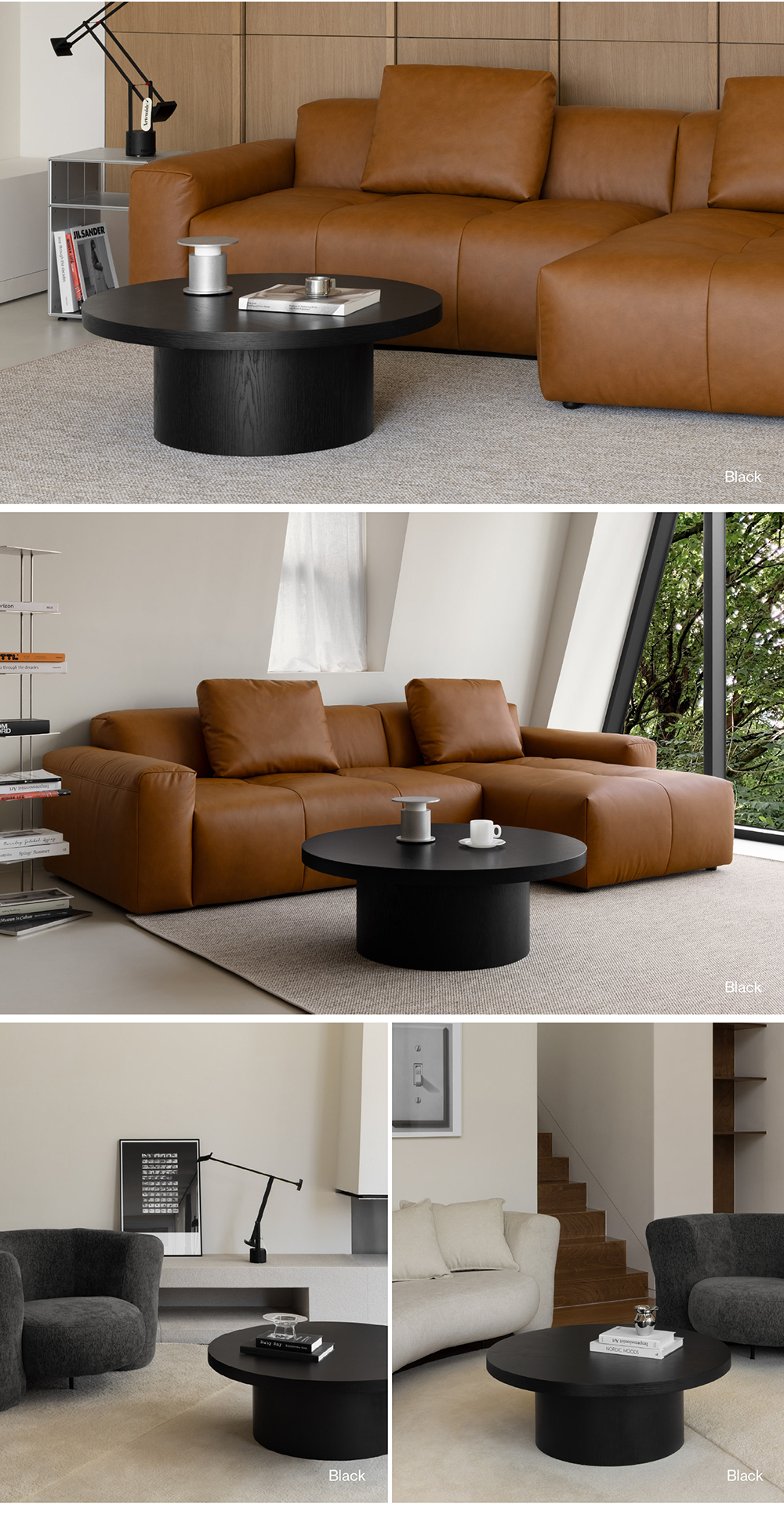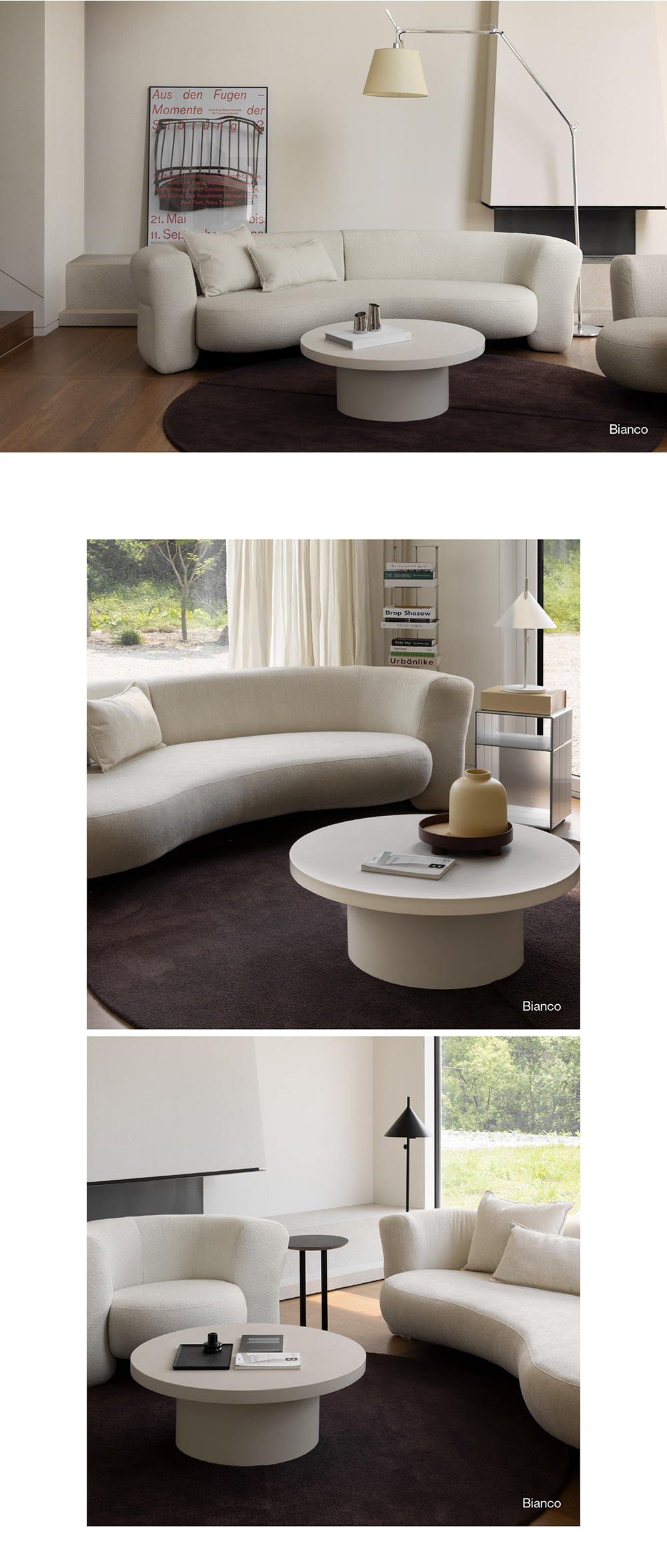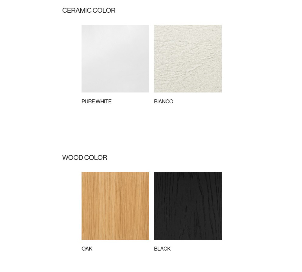 從充滿微妙氛圍的精緻 Pure White 和 Bianco 色,到強調木質紋路的橡木色和黑色,這些作品都採用單一色調,消除視覺的干擾。您可以體驗到由細節所創造的整體一致感,營造出單一物體的幻覺。