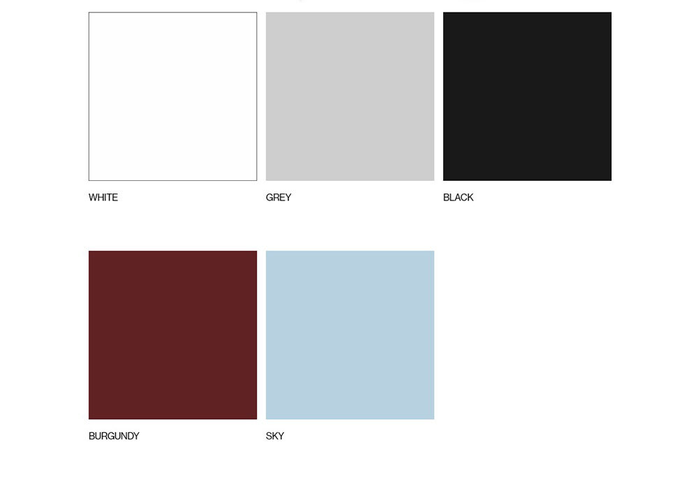| 顏色 | Burgundy 勃根地紅色, Grey 灰色, SKY 天空藍色, White 白色, Black 黑 |