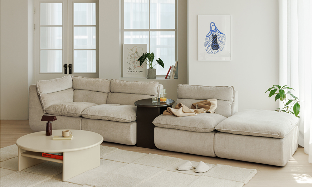 Vember 模組沙發以其柔軟舒適的造型,打造出完美的放鬆空間,重新定義了放鬆的含義。